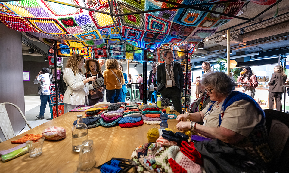 In de zaal worden deze drempels herkend. Verschillende deelnemers leggen direct nieuwe verbindingen om elkaar te versterken. Tijdens de workshops gingen zij aan de slag met uiteenlopende thema’s: van Gezond Ontwerpen tot Placetesting en de Gezonde Basisschool van de Toekomst. Op de Gezonde Markt maakten bezoekers kennis met talloze initiatieven, variërend van de Brei-Oma’s tot Positief Ontwerpen op de Tekentafel. Gospelkoor G-Roots zorgde voor een muzikale afsluiting – want zoals Marijke Will-Jansen, senior innovatiemanager bij Medical Delta concludeerde: “Hier zit muziek in!”