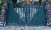 Fotobijschrift: Art deco-hekwerk bij de Nederlandse-Hervormde kerk in Oegstgeest
