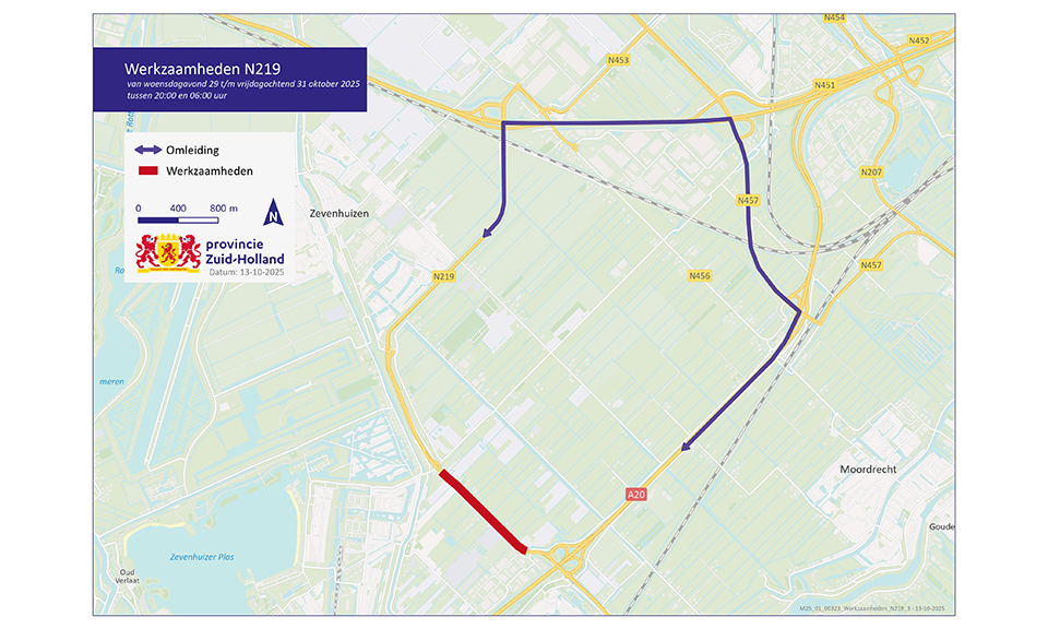 N219: werkzaamheden bij Nieuwerkerk aan den IJssel 29 - 31 oktober 2025