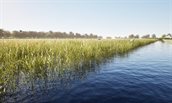 - Groen en donkergroen: bos (donkergroen) en struweel (groen). Het struweel, met planten en struiken, zorgt voor een geleidelijke overgang van de bomen naar het water.
