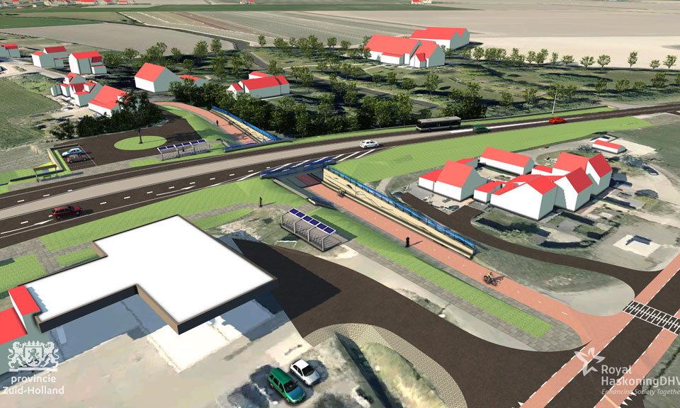 We plaatsen R-net-haltemeubilair (wachthuisje, inclusief digitale informatiepanelen met actuele vertrektijden) en fietsenstallingen. De buspassagiers kunnen de N215 ter hoogte van de Molendijk kruisen via de fiets/voetgangerstunnel Molendijk.