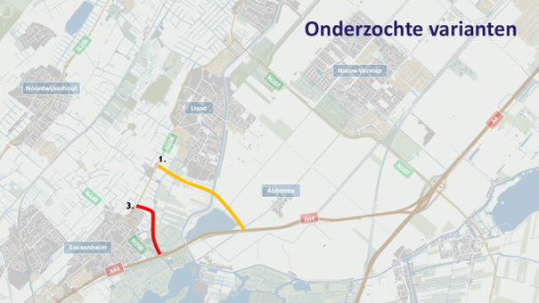 - Gekeken welke mogelijke opties/varianten er voor een nieuwe weg zijn. De verschillende mogelijkheden met elkaar vergeleken. Variant 1 en 3 bleven over voor verder onderzoek.