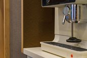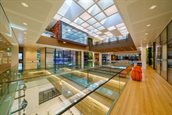 In het gebouw, zoals dat er voor de renovatie uitzag, waren alle plafonds voorzien van plafondrasters. Deze rasters zijn zorgvuldig verwijderd en hebben opnieuw een plaats in het pand gekregen. Het geoogste rasterplafond is nu te zien als paneelvulling in de metalen roomdividers in het pand.