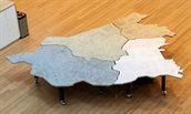 Kerstboomtakken en –naalden, verzameld in Rotterdam, zijn verwerkt tot BioM. Dit is een dun plaatmateriaal, dat je terugziet in een van de tafelbladen van de Zuid-Hollandtafel op de tweede etage van het provinciehuis.