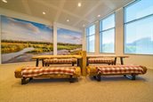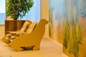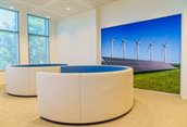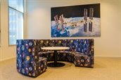 Eén van de wieken van een afgeschreven windmolen is omgebouwd tot een bank. De wiek is afkomstig uit een windmolenpark op de Noordzee en maakt nu deel uit van de themaruimte Energy Island op de tweede verdieping van het provinciehuis.