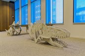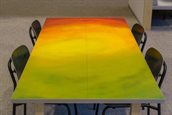 De Dinosaurtable geeft medewerkers binnen de provincie de gelegenheid om op informele wijze te vergaderen en samen te werken. De natuur en de dinosaurussen in Naturalis vormden voor dit ontwerp vanzelfsprekend de inspiratie. De tafel ziet er met een frisse en tegelijkertijd speelse uitstraling uitnodigend uit. De dinosaurus is gemaakt van geoogste panelen, de tafels zijn