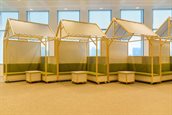 De leerlingen die aan de slag gingen met het thema ‘Glazen stad’, stelden de kassen in het Westland centraal. Hieruit komt het ontwerp van een flexibele werkkas voort. Het ontwerp sluit mooi aan op de informele setting van de ruimte en is praktisch in het gebruik. De kas biedt flexibiliteit in de grootte van de groep gebruikers. Eén kas kan worden gebruikt door een kleine groep, maar wanneer je meer kassen aan elkaar schuift kun je ze gebruiken voor een grotere groep mensen.