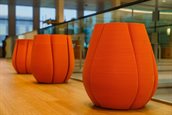 Naast de themaruimte Keukenhof op de tweede verdieping van het provinciehuis stralen de felle tulpenkleuren je tegemoet. Een opvallend element in de ruimte zijn de grote tulpenvazen. Ze geven de ruimte niet alleen een kleurrijk karakter, ze zijn daarnaast ook bijzonder, omdat ze gemaakt zijn van kunststof afval en met een 3D-printer geprint zijn.